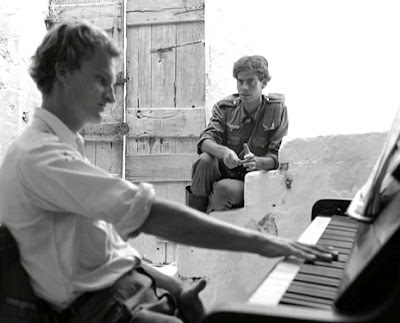 On Crete, a wounded German paratrooper named Stroszek is sent to the quiet city of Kos with his wife Nora, a Greek nurse, and two other soldiers recovering from minor wounds. Billeted in a decaying fortress, they guard a munitions depot. There's little to do: Becker, a classicist, translates inscriptions on ancient tablets found in the fortress, Meinhart devises traps for cockroaches, Nora helps Stroszek make fireworks using gunpowder from grenades in the depot. Slowly, in the heat and torpor, Stroszek goes mad, drives the others from the fortress, and threatens the city with blowing up the depot. With care, the German command must figure out how to get him down.